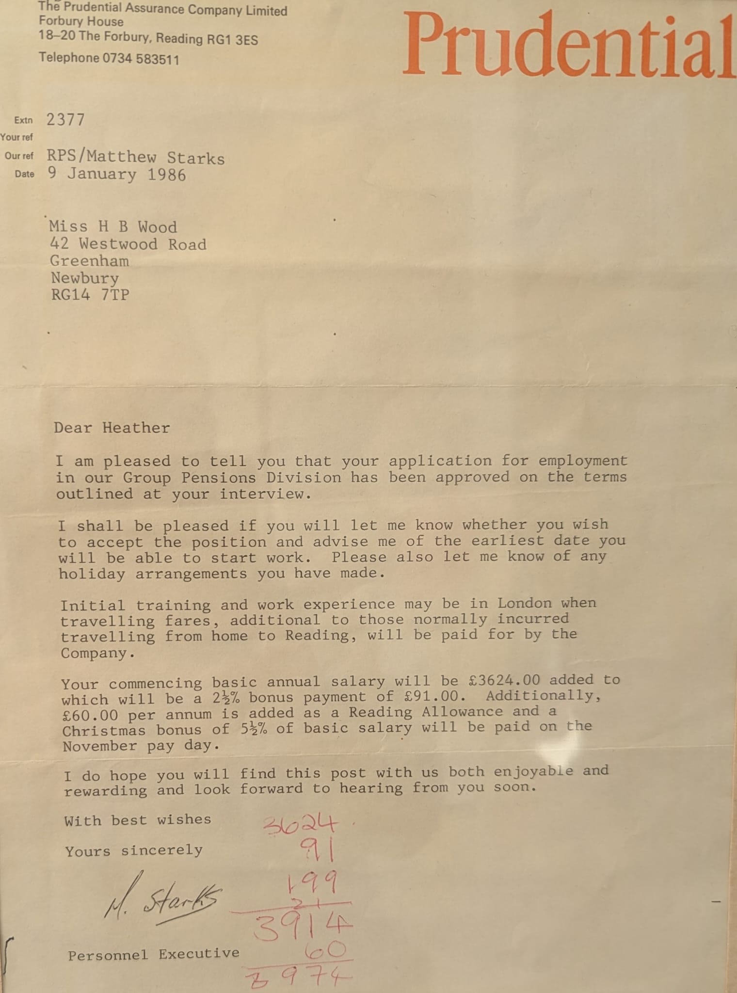 I then moved down the road in Reading to Prudential, working on their mainframe pensions system for Paul Moss then Stewart Waight, and then transferring to pensions administration under Paula Gibbons.