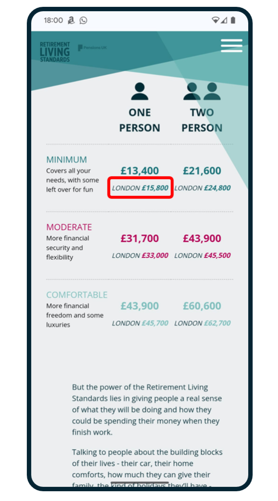 Pensions UK has developed something called the Retirement Living Standards (RLS) to help individuals picture what kind of lifestyle they could have in retirement and the costs involved.