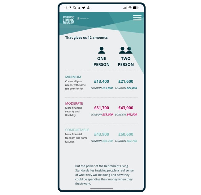 Then there are benchmarks, like the Retirement Living Standards developed by Pensions UK.
