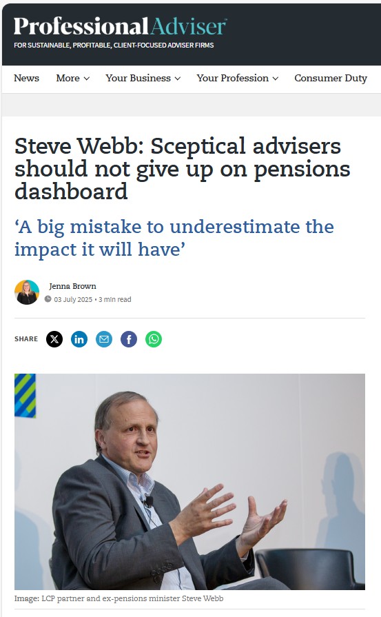 In response, LCP Partner and former Pensions Minister Steve Webb says “it would be a big mistake to underestimate the impact [dashboards] will have”.