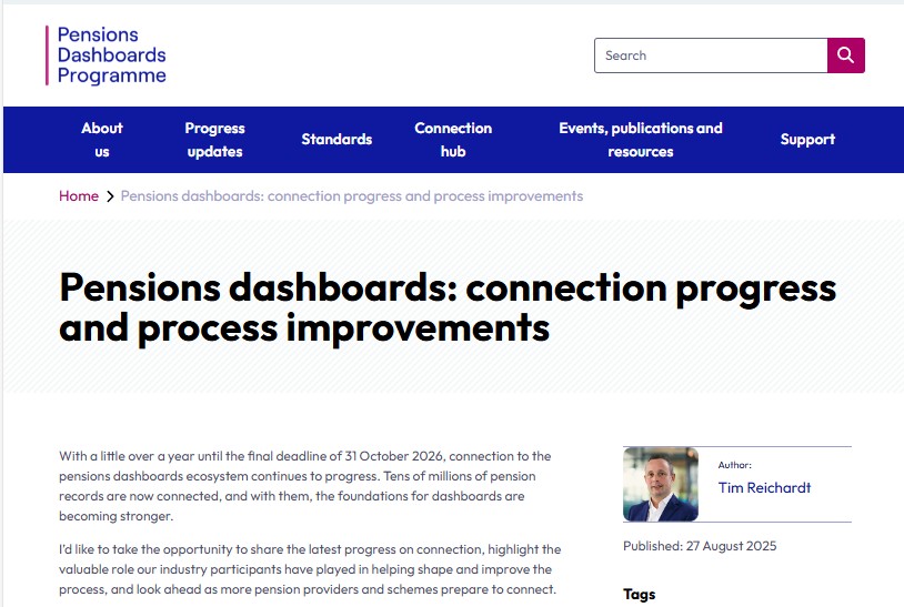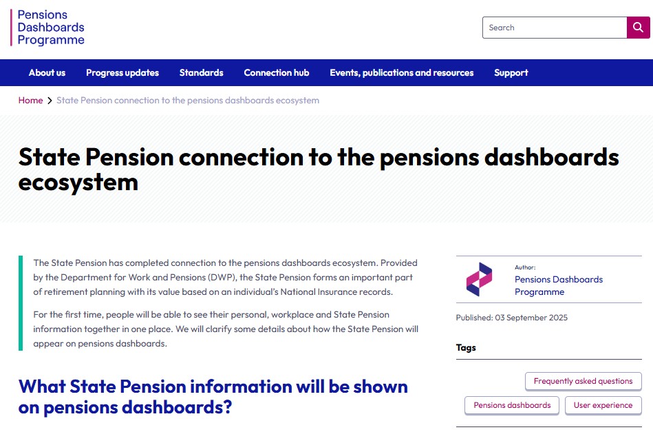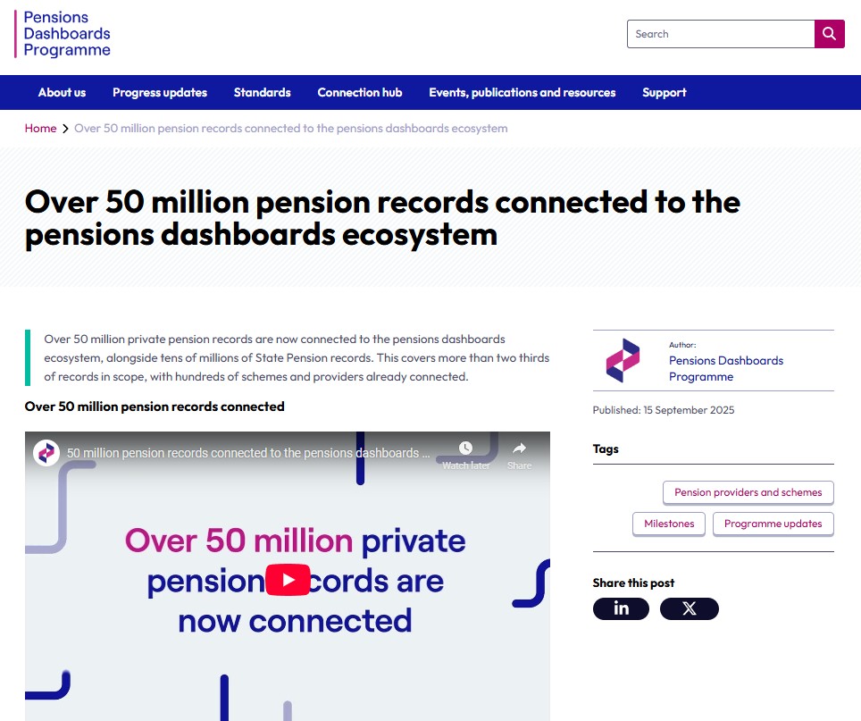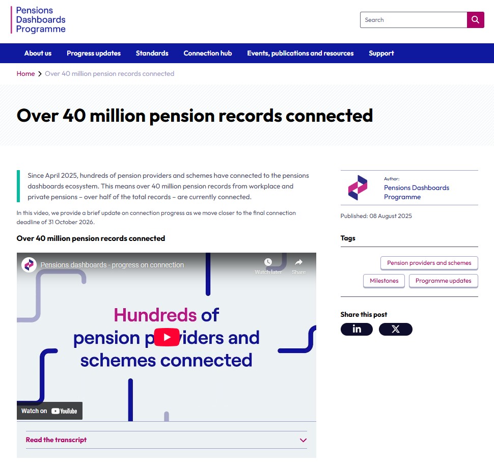 A PDP video announces over 40 millions workplace and private pension records are now connected to the dashboards ecosystem. But, as I say in my LinkedIn post, the total’s now probably between 60 & 70 million including State Pension records, heading towards in excess of 100 million records by 31 October 2026.