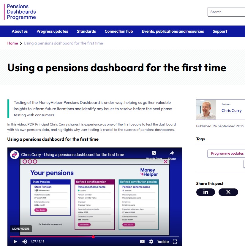 PDP publishes a blog and video about Chris Curry’s first live usage of the MoneyHelper Pensions Dashboard.