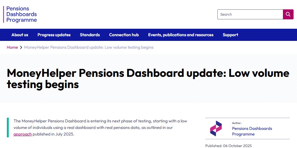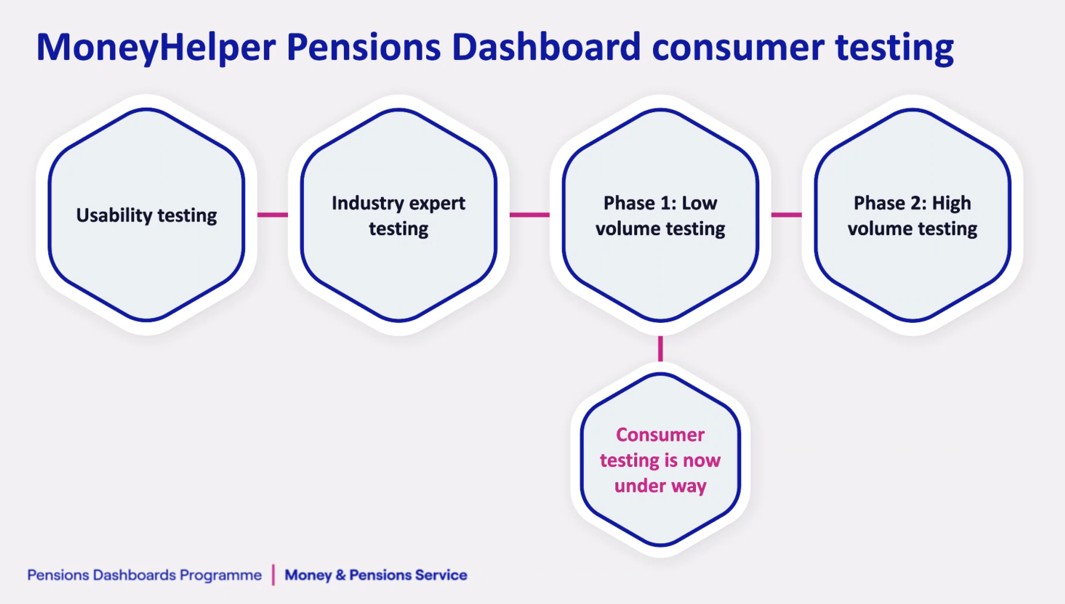 A PDP blog article confirms low volume, moderated testing of the MoneyHelper Pensions Dashboard (MHPD), by real consumers, is now underway.