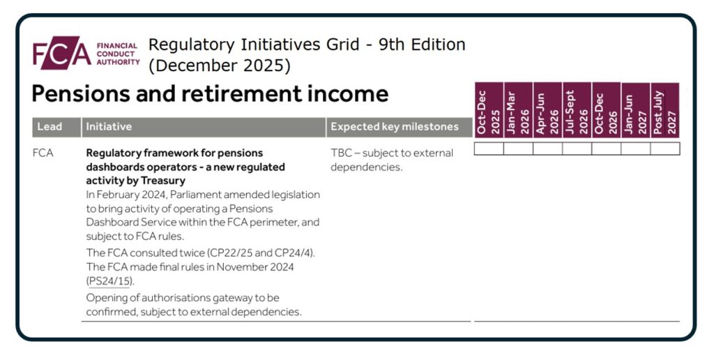 FCA also publishes the 9th edition of its Regulatory Initiatives Grid (RIG), confirming (on page 51) that Private Sector Pensions Dashboards (PSPDs) won’t be happening any time soon, as I posted on LinkedIn.