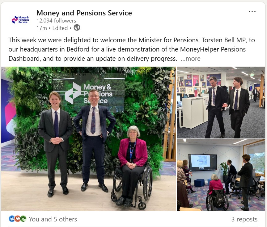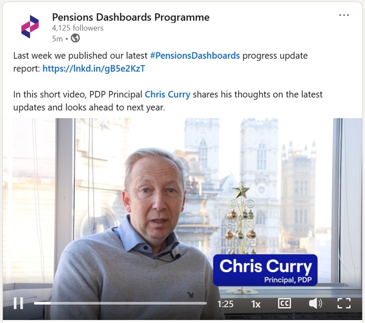 PDP Principal Chris Curry concludes the year with a 90-second video update posted on LinkedIn, and a MaPS LinkedIn post explains that the Minister for Pensions visited MaPS HQ in Bedford this week and received a live demonstration of the MHPD.