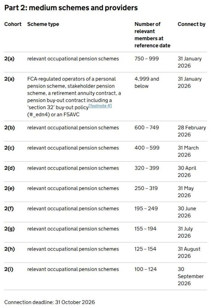 Meanwhile all remaining in scope pensions data which is not yet connected to the dashboards ecosystem is due to be connected over the next nine months (Jan to Sep 2026) – see the Part 2 staging timeline below.