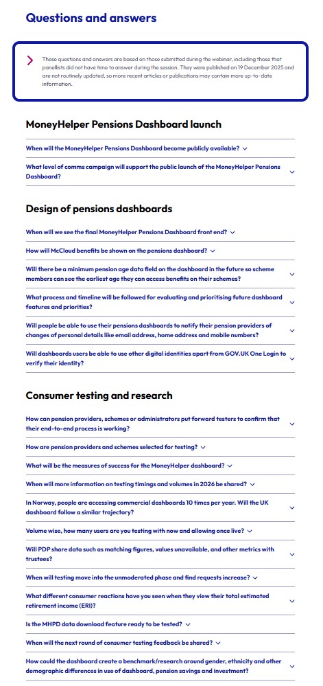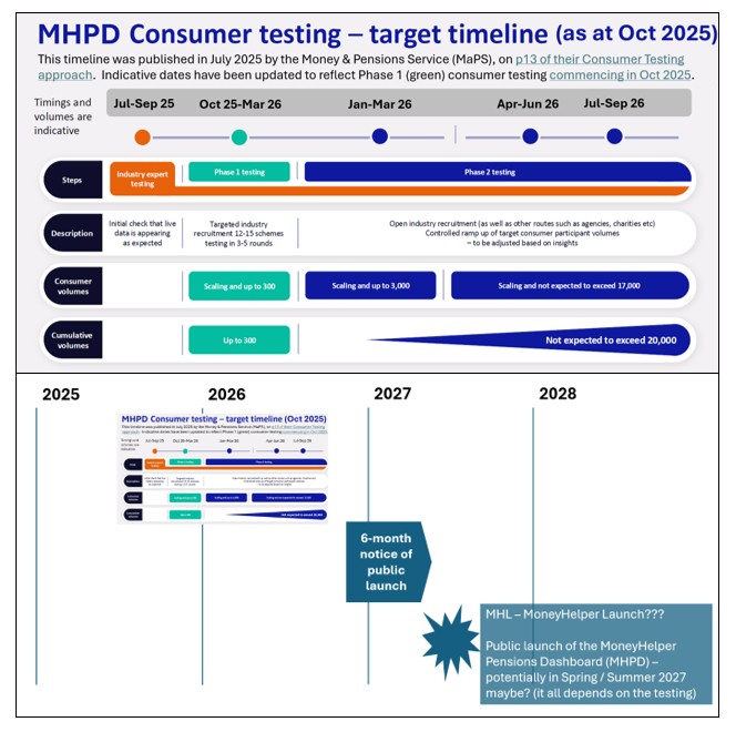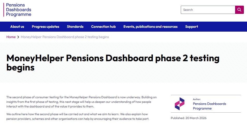 As 2026 gets underway, live consumer testing of the MoneyHelper Pensions Dashboard (MHPD) continues. In July 2025, MaPS published its MHPD Consumer Testing approach and target timeline (on page 13).