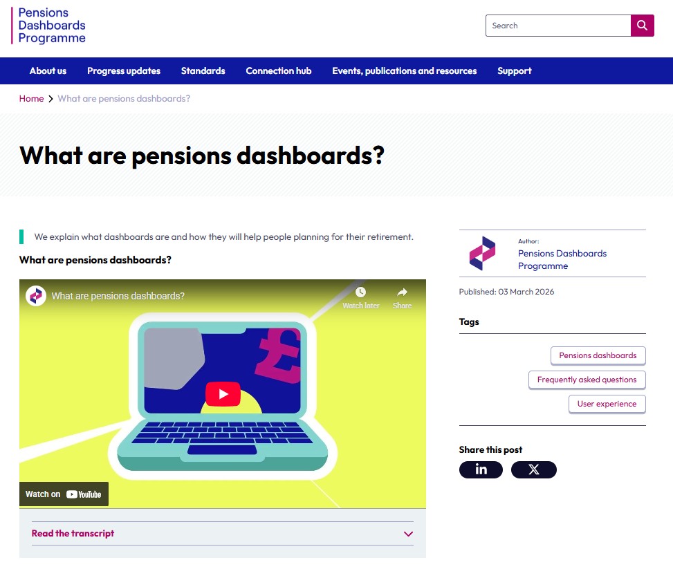 January 2026 – Short update video: I have a quick chat with Bec Wilson, over from Australia, on where we are up to in the UK with pensions dashboards and how powerful they’re going to be for consumers